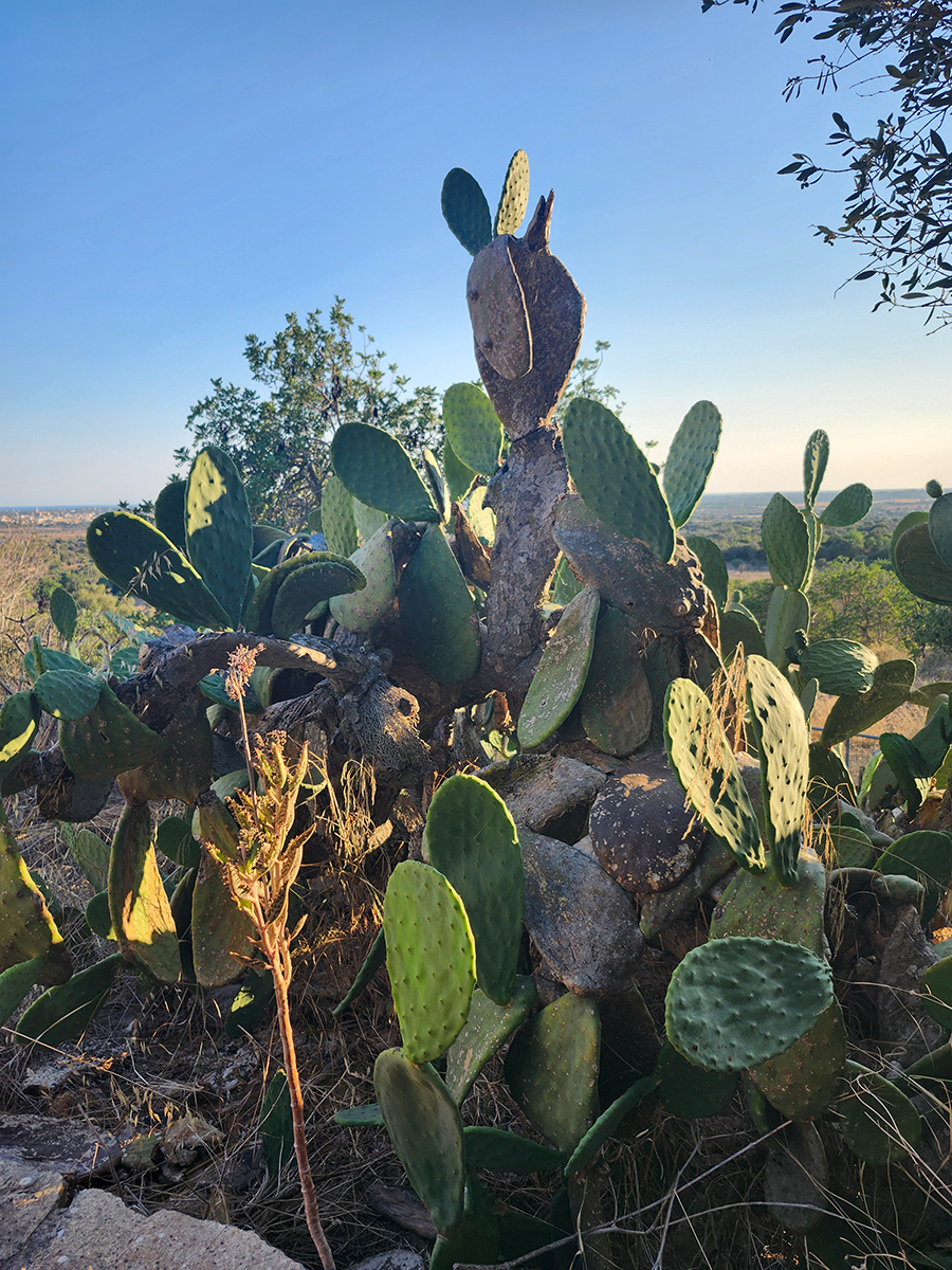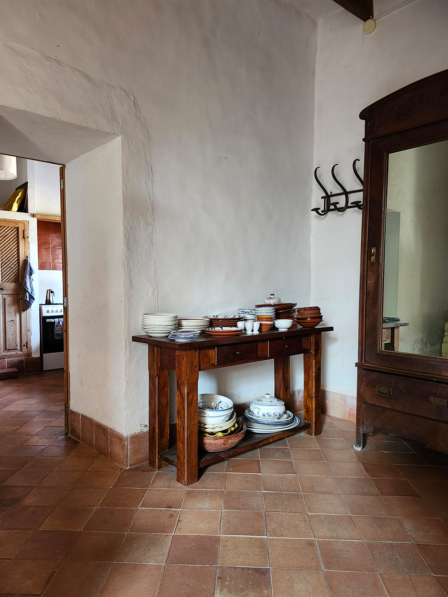 Das Haus lag abseits, in einer dieser flirrenden Landschaften, die im Sommer schon ziemlich ausgetrocknet sind. Dicke Mauern, Terrakottafliesen, schwere Türen, die man mit beiden Händen aufziehen muss. Im Haus gibt es kein Internet. Dafür weht durch die Räume ein Wind, der die Vorhänge bewegt, und aus der Küche klingt das Klirren alter Teller. Abends, wenn die Sonne untergeht, wird das ganze Haus golden. Wenn man aus dem großen Fenster im Wohnzimmer schaut, türmt sich eine Wand aus Kakteen auf.
